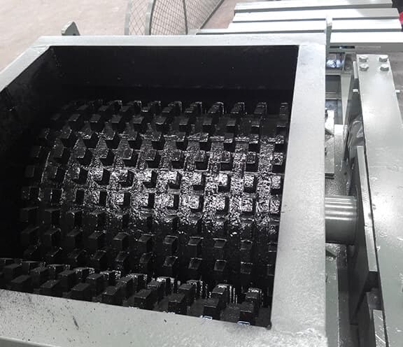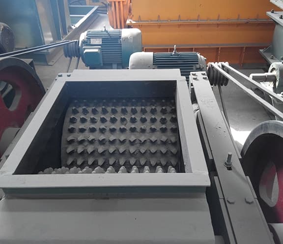 The two sets of individually driven roller shafts are used to crush the material by the crushing force and the shearing force generated by the relative rotation. After the material enters into the crushing chamber, it is subjected to the force of the rotating roller shaft and forced to pass between the two rollers. At the same time, the material starts to be broken by the crushing and shearing of the roller shaft. The broken small particles move along tangent of the rotation roller and been thrown under the machine through the gap between the two rollers.